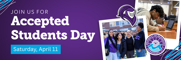 Follow us on Social Media | Accepted Student EventsCongratulations on your acceptance to University of Bridgeport and welcome to the Purple Knight family!🎉 How to RegisterTo register for an accepted student event, you may be required to log into your account with the email and password used to create your UB application. If you run into any issues and need help registering for an event, please email admit@bridgeport.edu. Find an EventSelect a date on the calendar to see what is happening that day! Click the event to navigate to the registration page. The available events on that date will appear below: | Upcoming Accepted Student Events | |